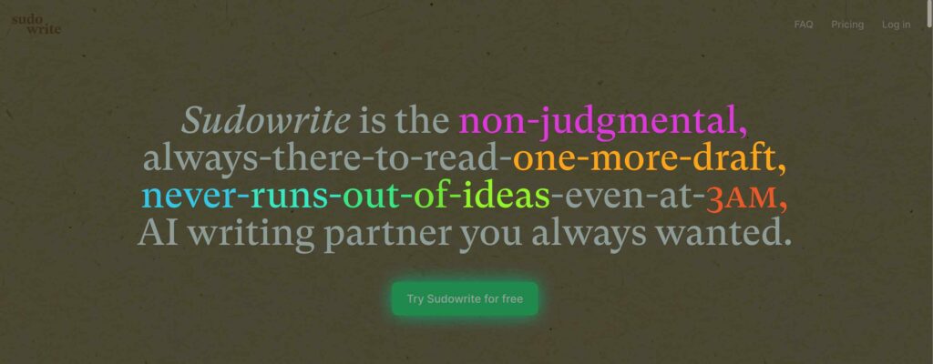 Sudowrite is an artificial intelligence novel writing assistant created by writers for writers. It has the best user interface of any AI-writing app I've used. If you're a writer, it has a lovely, focused user interface with an assistant available when you need it.