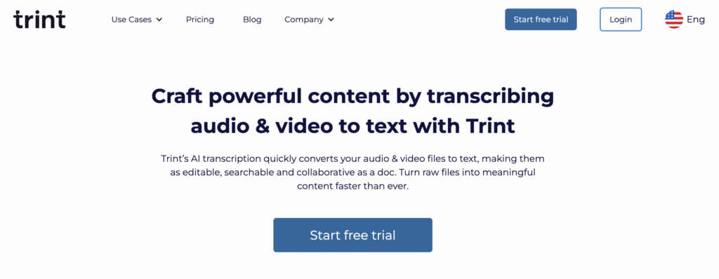 Trint is a powerful transcription software that uses artificial intelligence to automatically transcribe your audio and video files. With a simple drag-and-drop interface, you can easily upload your files to the Trint platform and get accurate, high-quality transcriptions in just minutes.