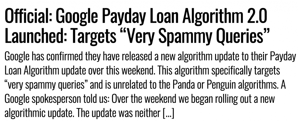Payday Loans Update: The "PayDay Loans" update affects the rankings of spammy queries.