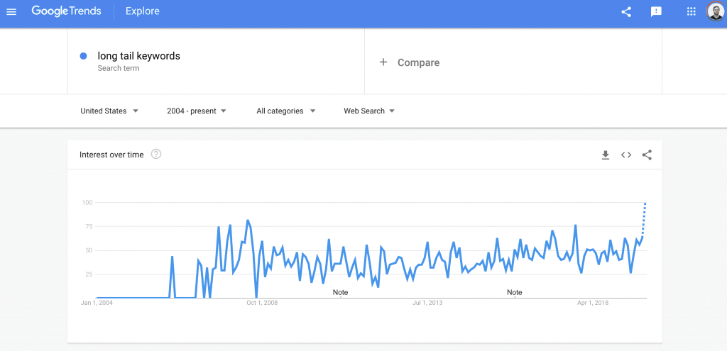It looks like the interest for "long tail keywords" is on the rise .. kinda.